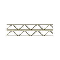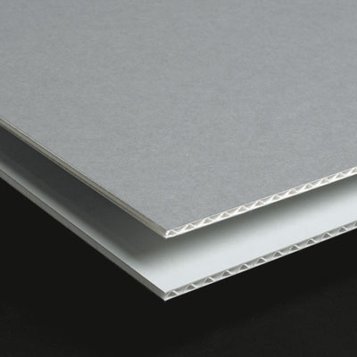 Golfkarton (kwaliteit 031) uit gegarandeerd verouderingsbestendig, conform ISO 9706, natuurwit karton, met een lichtgrijs bedrukte bovenzijde. De enkele lagen van het golfkarton zijn natvast gelijmd. Basismateriaal voor KS-dozen. Ook te gebruiken als achterwand voor grafische materialen en schilderijen.
