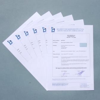 Het blauwgrijze, zuurvrij pak- en omslagpapier leveren wij standaard in twee velformaten en verschillende gramgewichten 135, 160 en 175 g/m². Het materiaal voldoet in alle gramgewichten aan de kwaliteitseis nr. 1 van het ICN en aan de PAT-test ISO 18916.