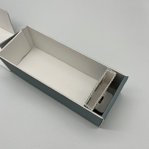 | Overslagdoos | 816.OD.120 | Een overslagdoos op maat, voor wanneer onze standaard modellen nét niet voldoen aan uw wens. Per stuk of kleine serie te verkrijgen. Ook in afwijkende vorm, zoals bijvoorbeeld een kaartendoos met een scharnierende zijde over de smalle kant van de doos. |