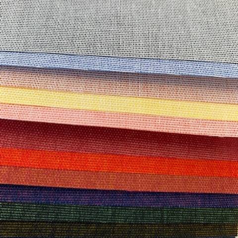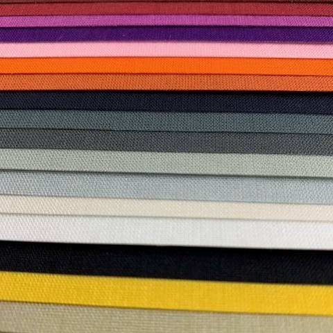 Middelzwaar textiel, zuurvrij, met een natuurlijke uitstraling samengesteld uit een mix van stoffen: katoen-linnen-viscose. Ketting 100% viscose (rayon), inslag 30%, vlas 70% viscose (rayon). |