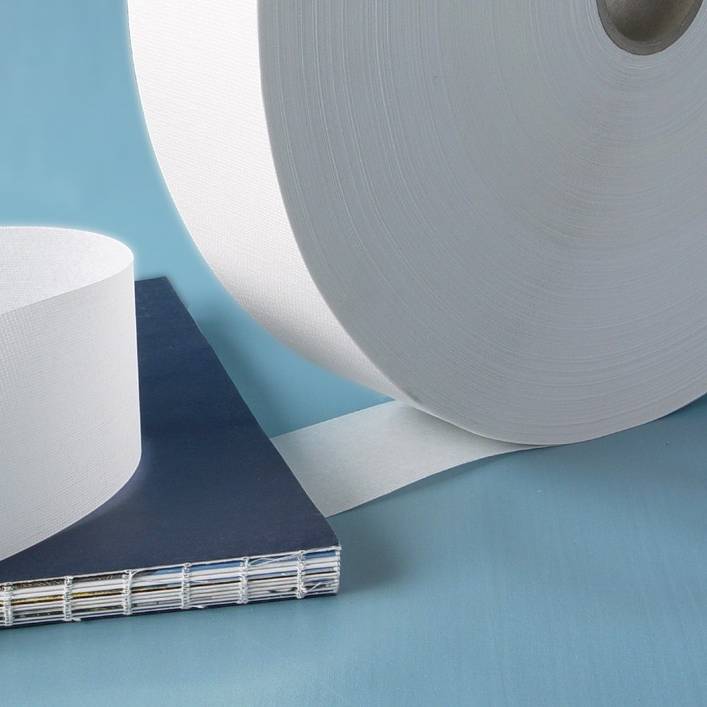 De perfecte materiaalcombinatie van katoen en papier, waarmee de rugversteviging met stof aan het boekblok bevestigd wordt. Scharnierstof is een alternatief voor crêpepapier en wordt gebruikt om de binding van rechte en ronde boekblokken te stabiliseren. Door de directe verbinding van de stof met de lijm van de rug wordt een optimale stabiliteit en een perfect scharnier tussen boekblok en boekomslag bereikt. Wij bieden scharnierweefsels met verschillende wevingen die als brede of smalle rollen kunnen worden verwerkt.