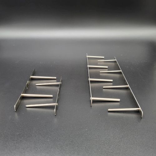 Eindstukken: met bijbehorende pennen met een diameter van 1,2 mm zijn, op aanvraag, op elke gewenste lengte leverbaar. Hiervoor geldt een minimale bestelhoeveelheid. Aantal sleuven: 2 (25 mm); 3 (37 mm); 4 (50 mm); 5 (60 mm); 6 (75 mm); 8 (95 mm).