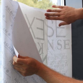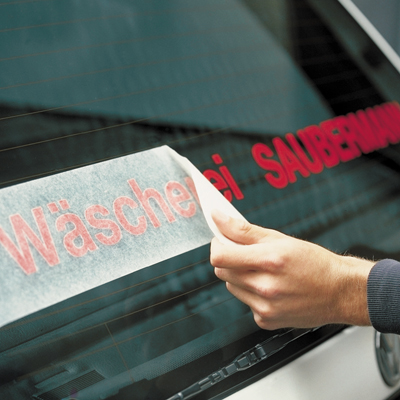 | TMO | Glanzende, PVC montagefilm voor de applicatie (positionering) van tekst en beeld. De lijnen (5 mm afstand) op de backing maakt positioneren nog eenvoudiger. Vanwege de zwakke hechting en de verwijderbare lijm kan de folie meerdere malen, op verschillende ondergronden worden ingezet. Ook te gebruiken om geplotte tekst en/of beeld 'op te slaan'. |